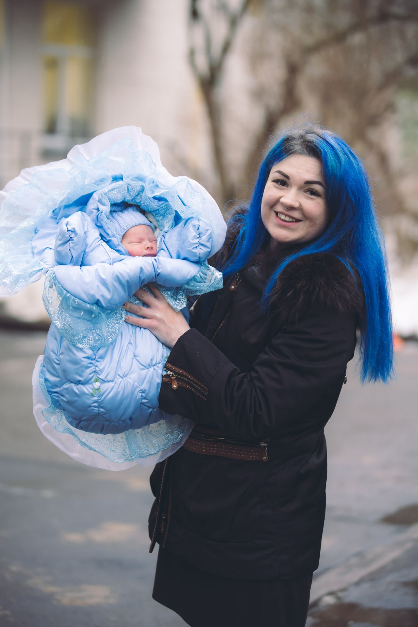 Примеры кадров с выписки в государственном роддоме. Часто в таких роддомах фотографа не пускают в палату и пеленальную, нет хороших локаций для фотосессии или красиво оформленной фотозоны, время для съемки сильно ограничено.